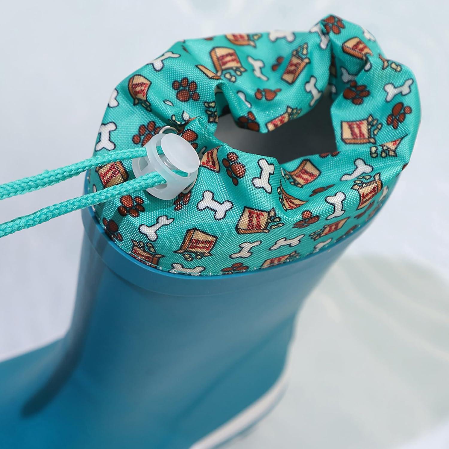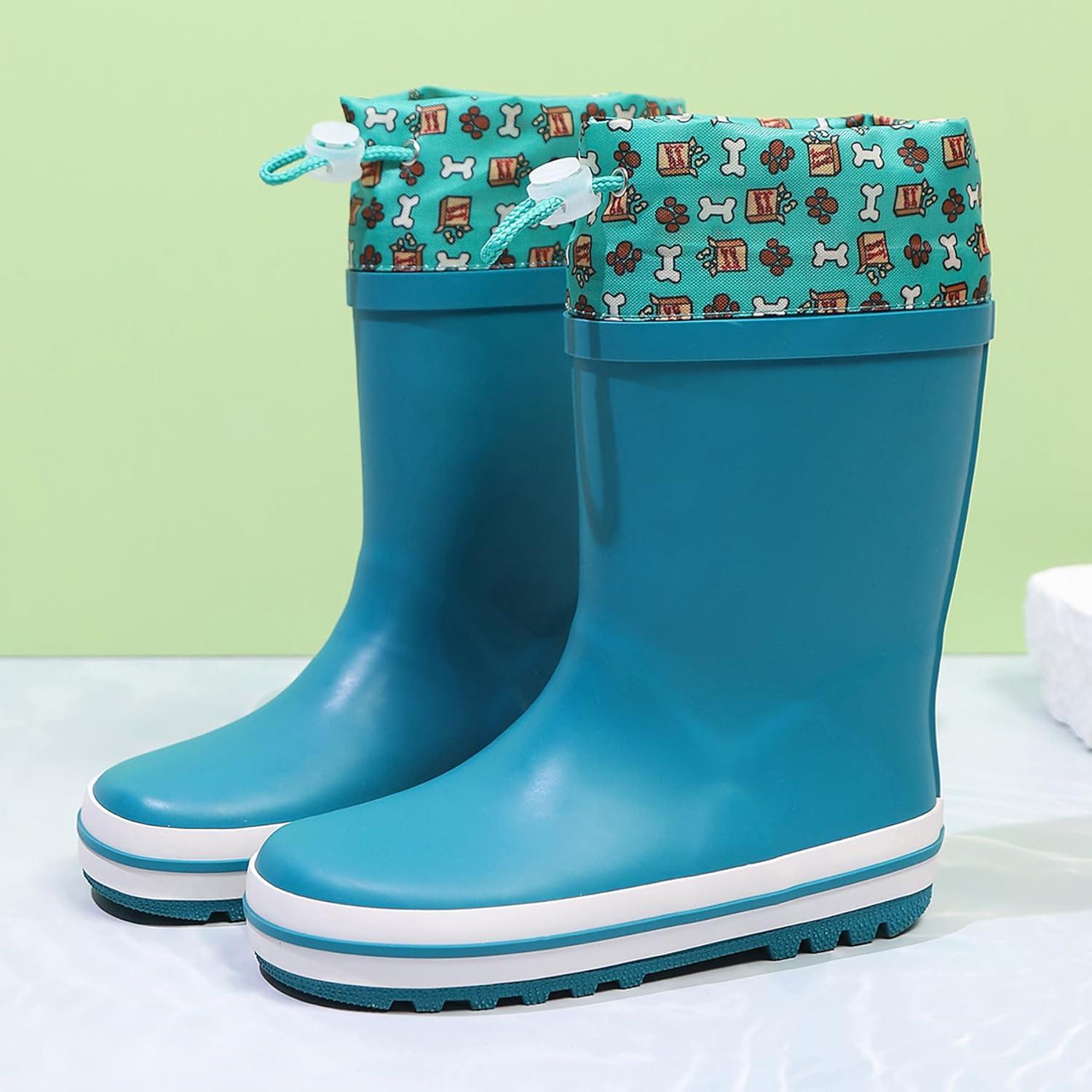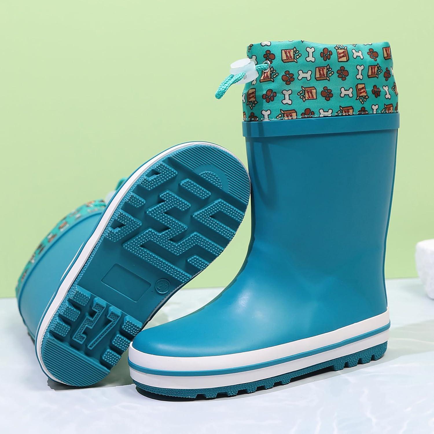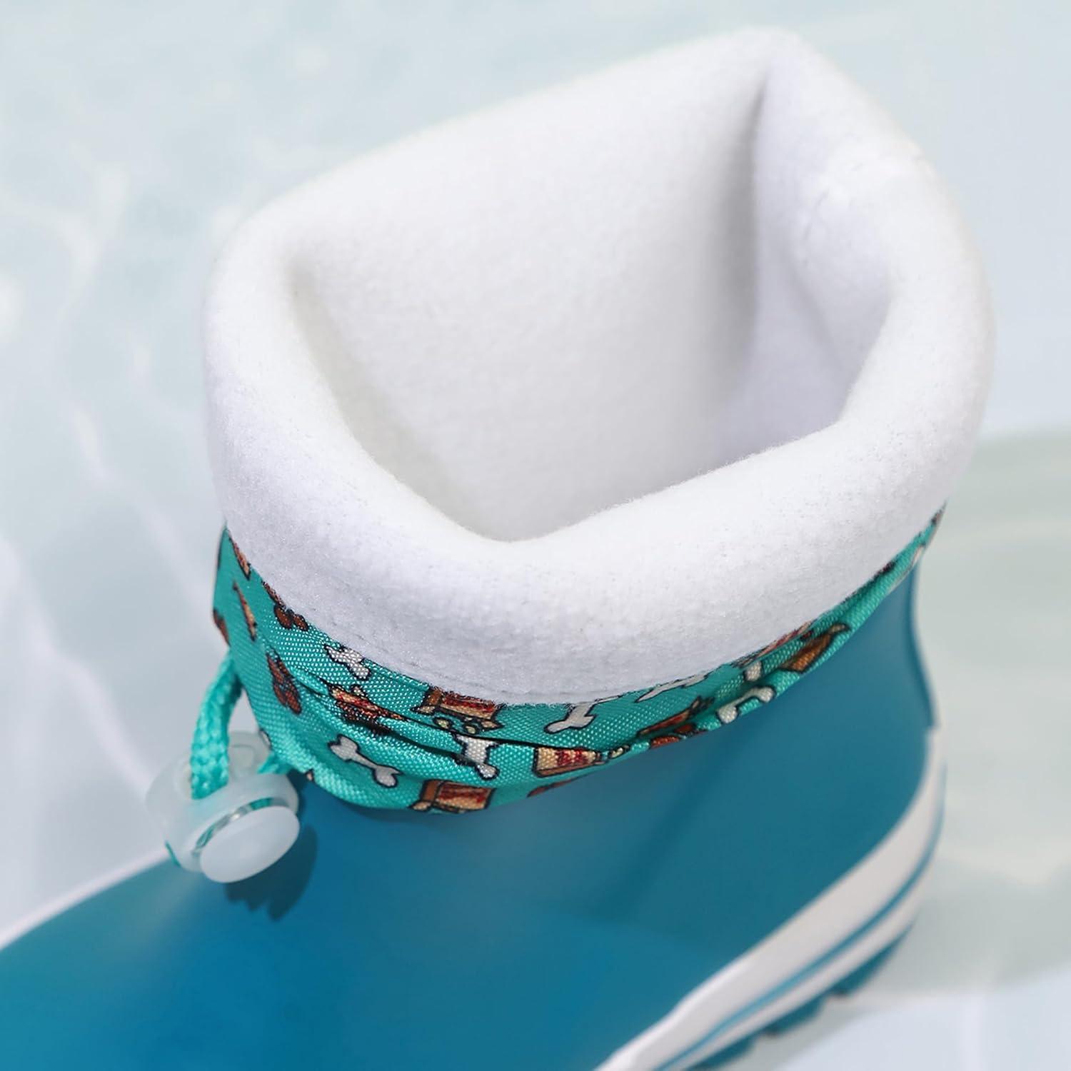 WTW Fleece Lined Todder Kids Rubber Rain Boots – Waterproof Warm Winter Outdoor Shoes for Girls Boys, Adjustable Drawstring, Non-Slip for Hiking and Adventures(Blue)