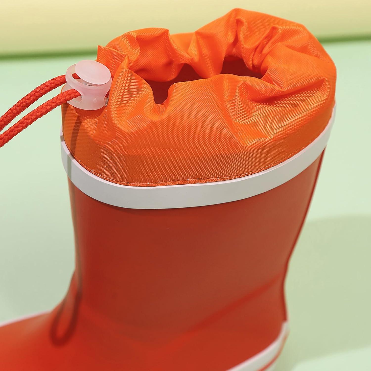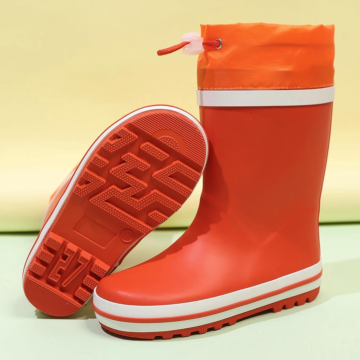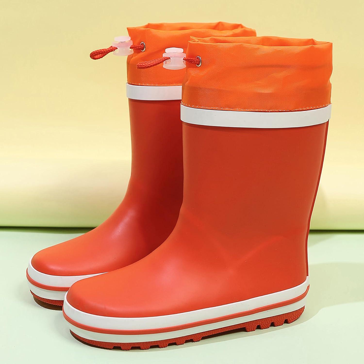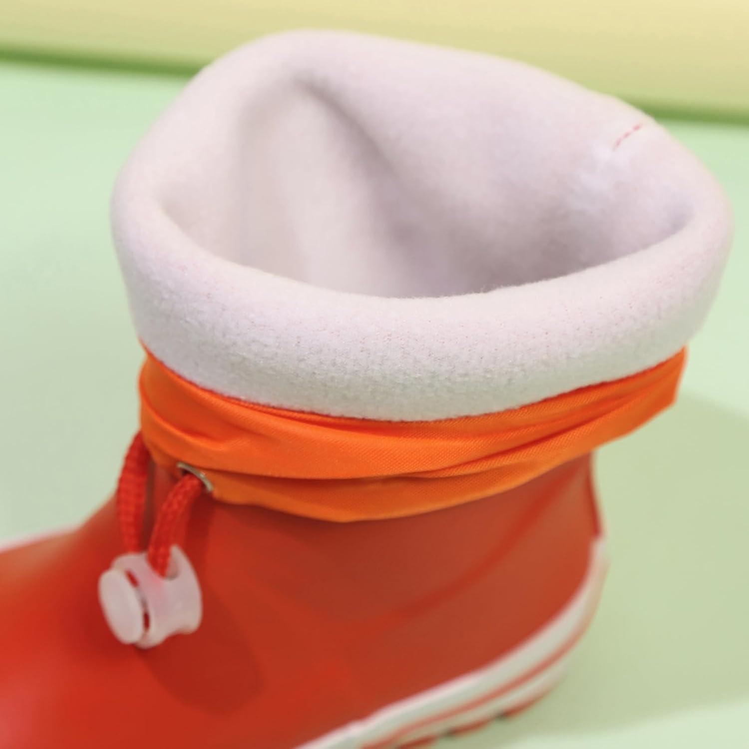 WTW Fleece Lined Todder Kids Rubber Rain Boots – Waterproof Warm Winter Outdoor Shoes for Girls Boys, Adjustable Drawstring, Non-Slip for Hiking and Adventures(Tangerine)