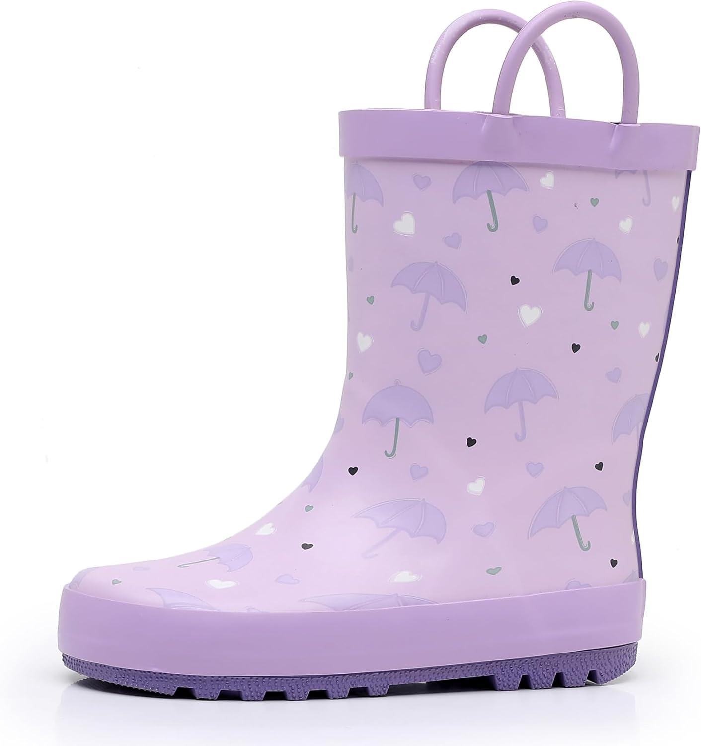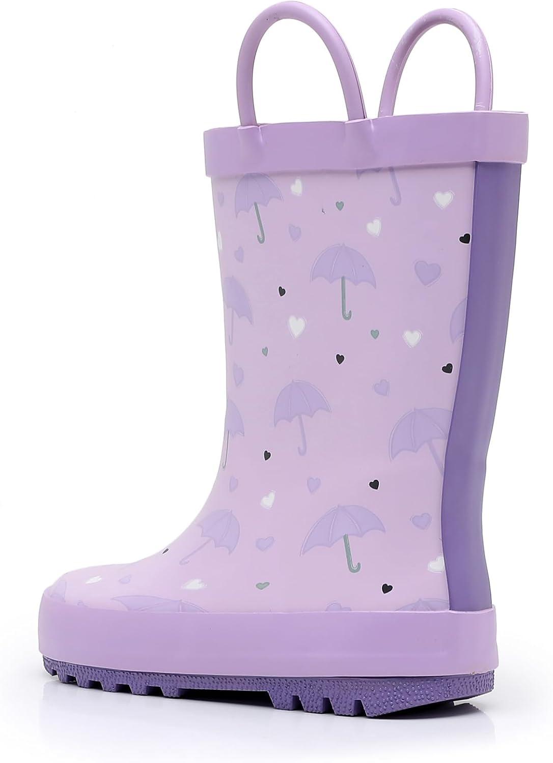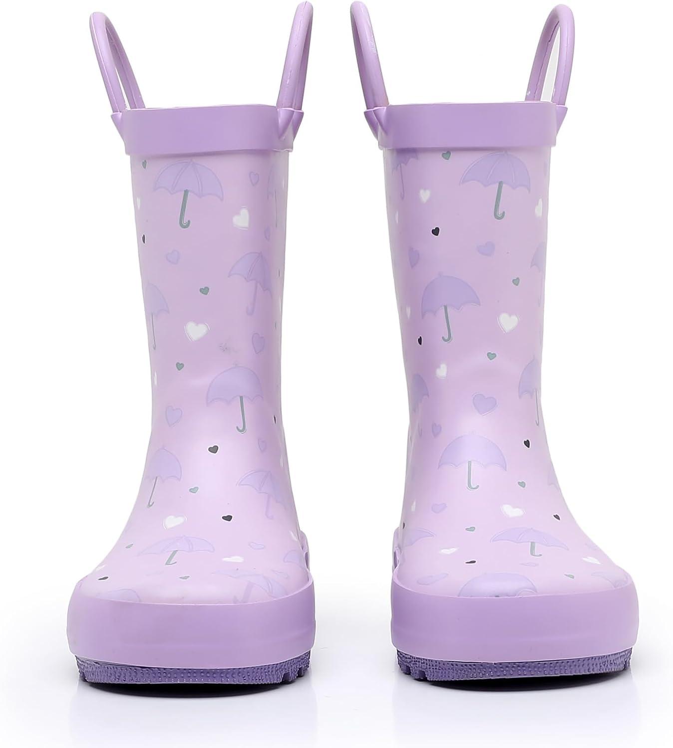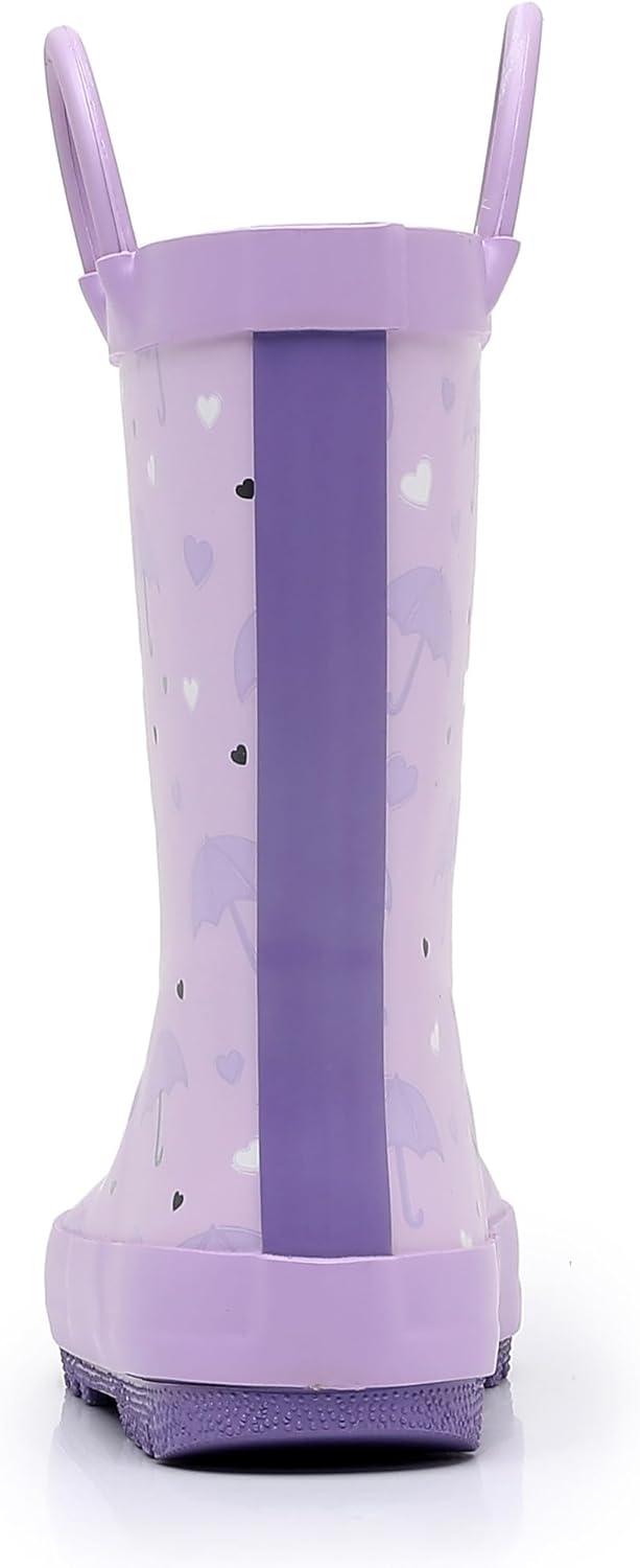 WTW Toddler and Kids Rain Boots with Easy-On Handles, Unisex-Child Waterproof Rubber Rain Boots in Fun Patterns for Girls and Boys (Toddler/Little Kid/Big Kid)(Lullaby Lavender)