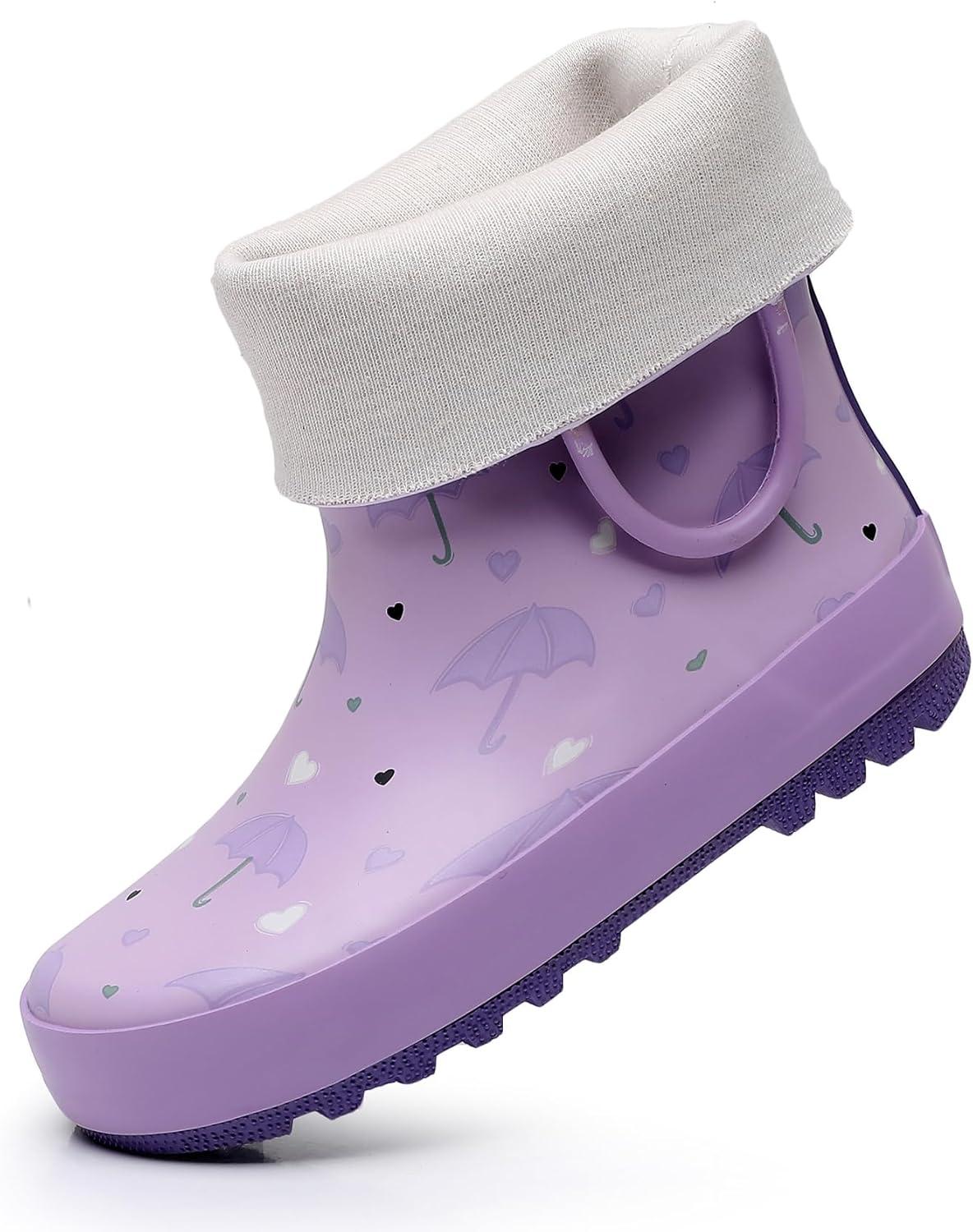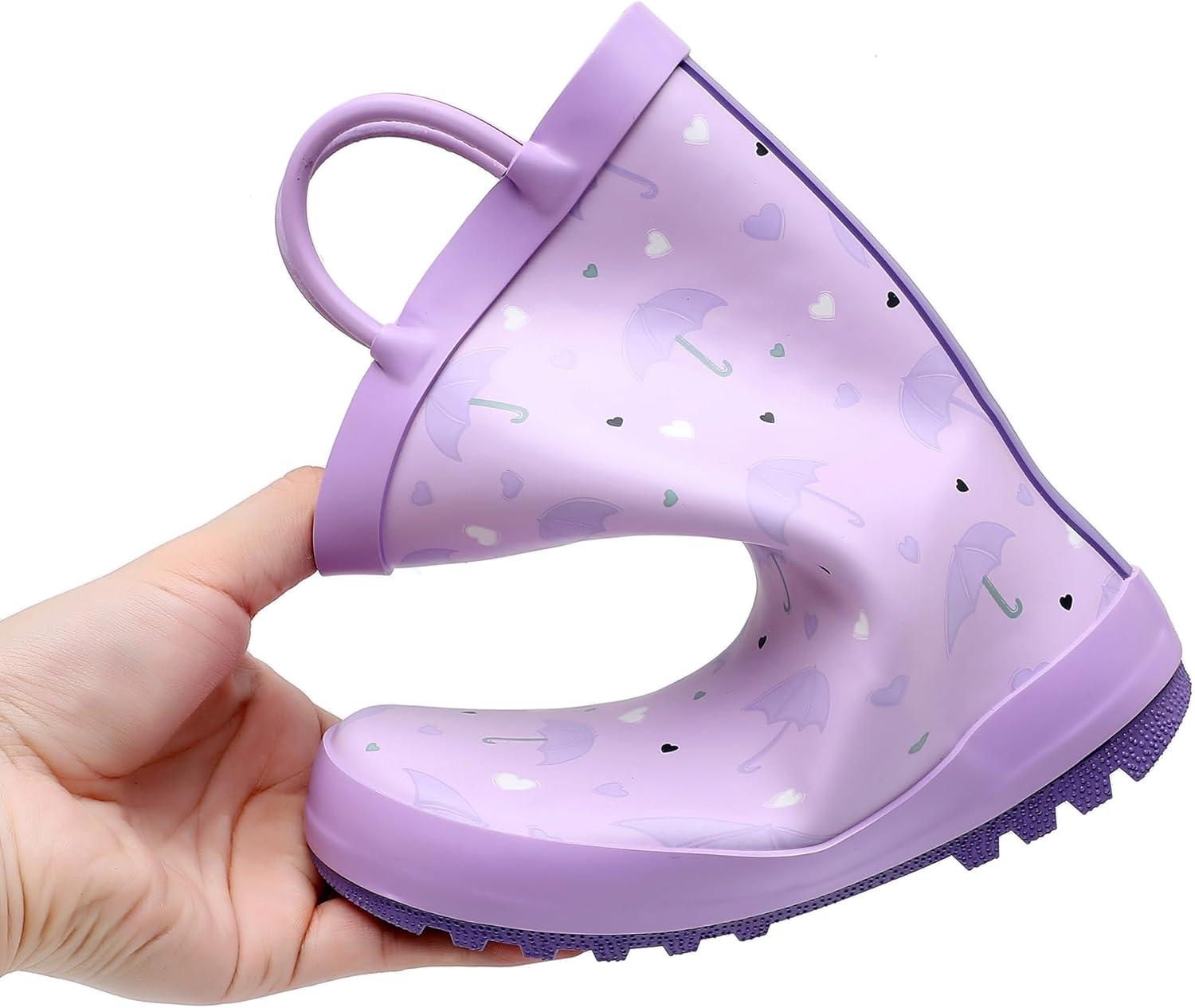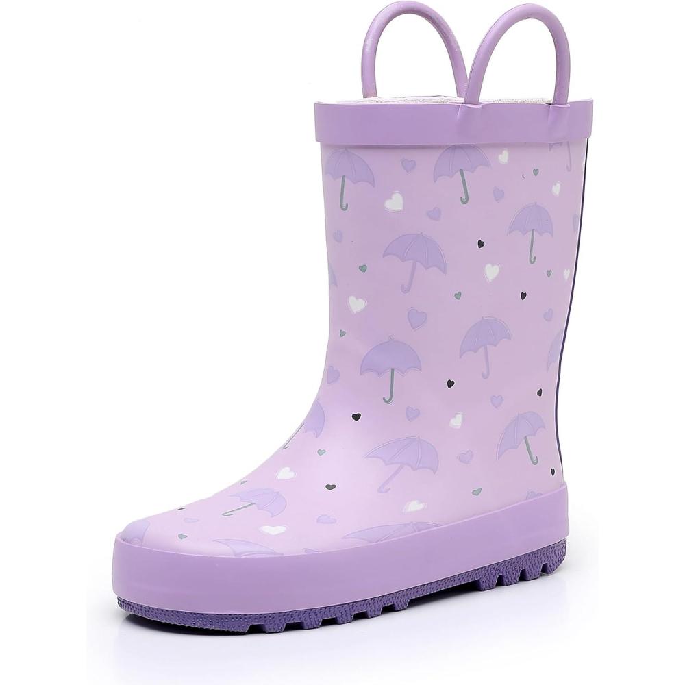 WTW Toddler and Kids Rain Boots with Easy-On Handles, Unisex-Child Waterproof Rubber Rain Boots in Fun Patterns for Girls and Boys (Toddler/Little Kid/Big Kid)(Lullaby Lavender)