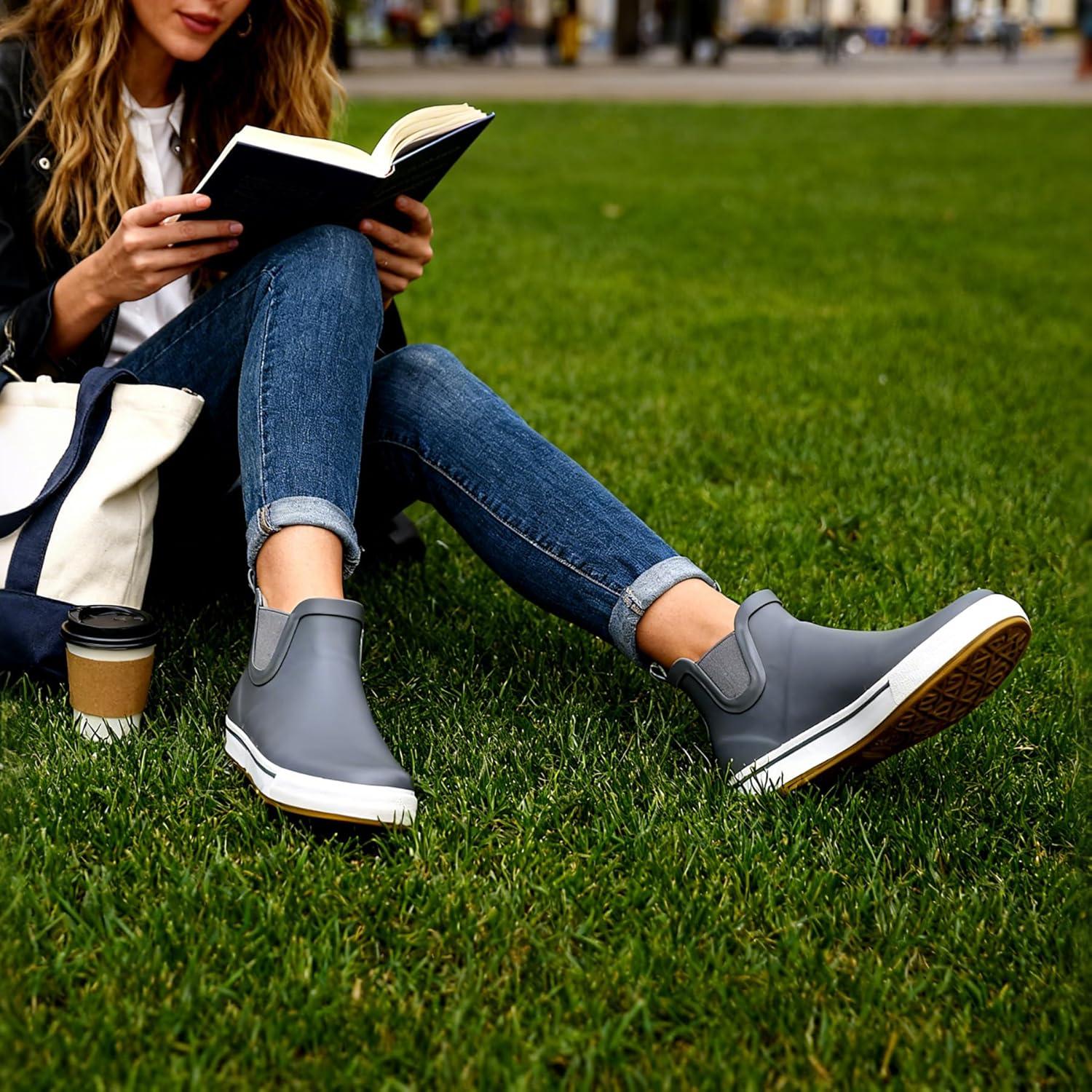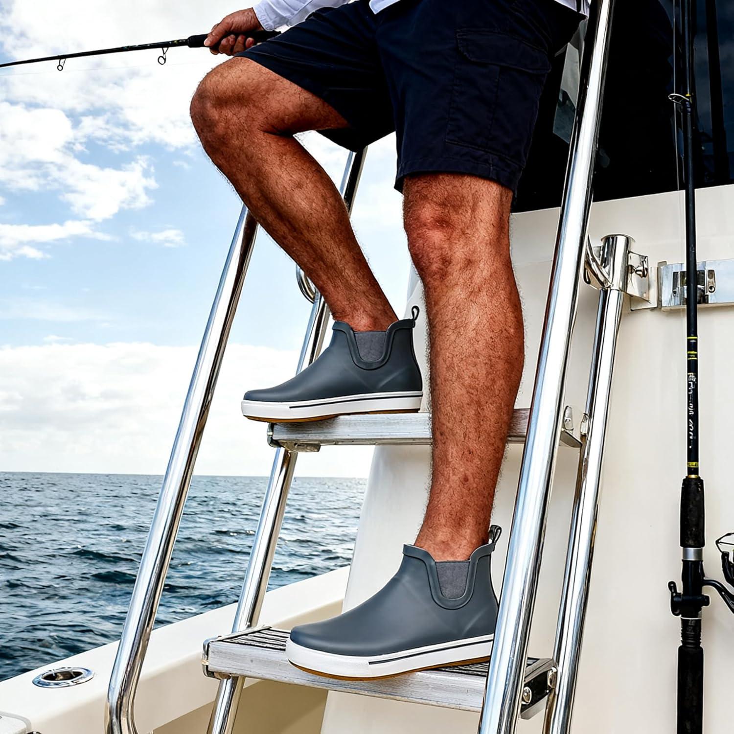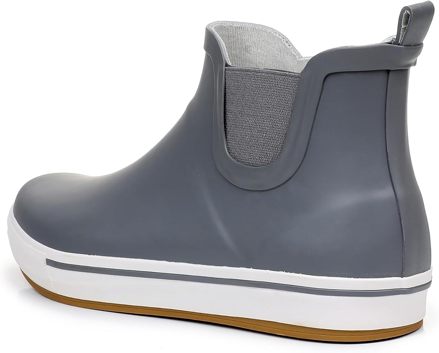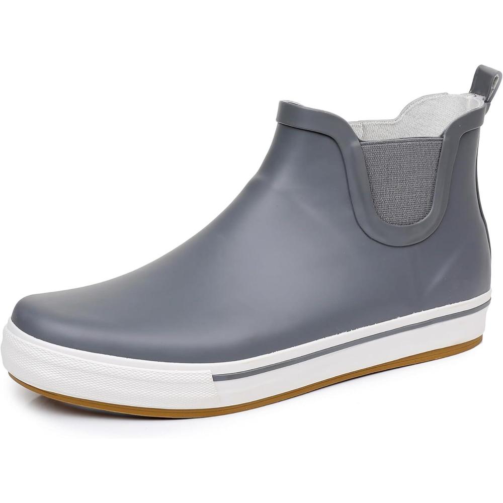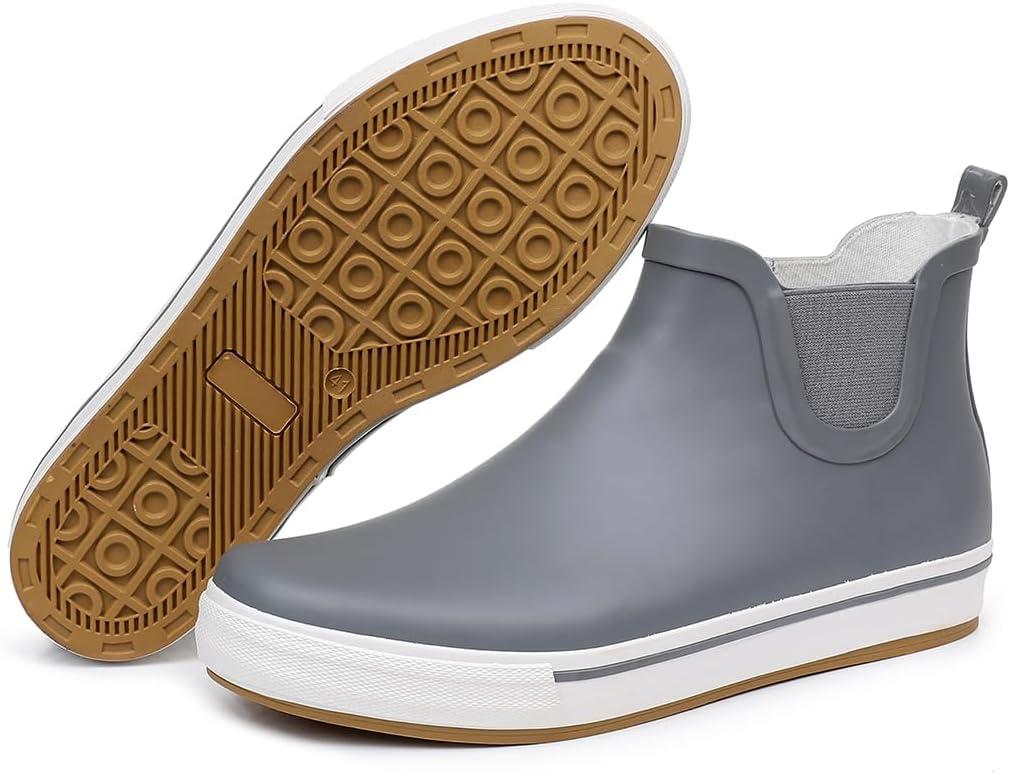 WTW Womens Rain Boots Deck Boots for Men – Lightweight Waterproof Rubber Fishing Rain Shoes with High Traction for Gardening Camping(Grey)